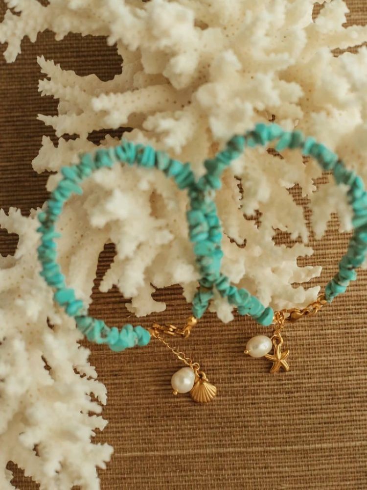 βραχιόλι ποδιού με τυρκουάζ χάντρες